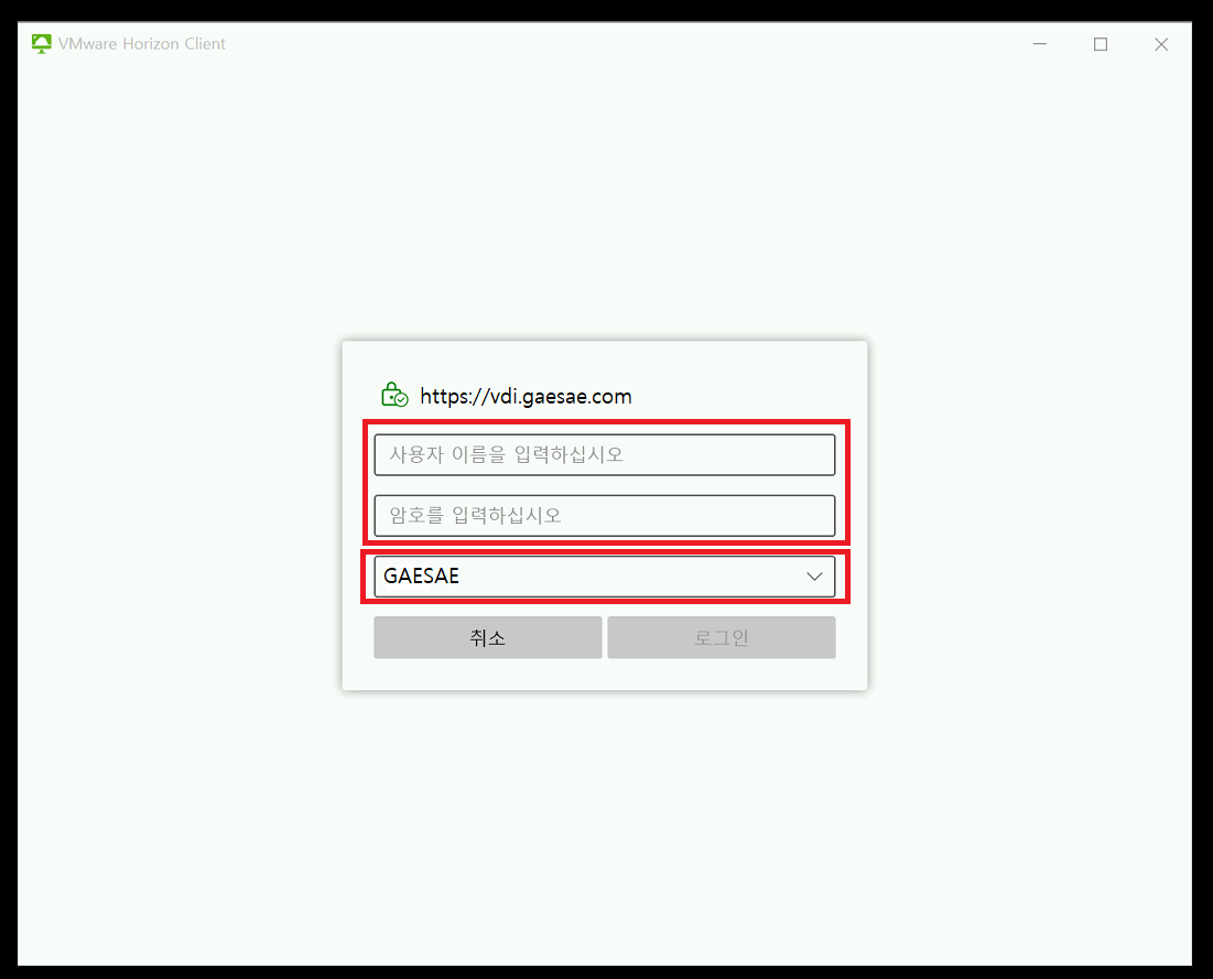 보통 서버 주소는 VDI 시스템 담당자들이 제공하므로