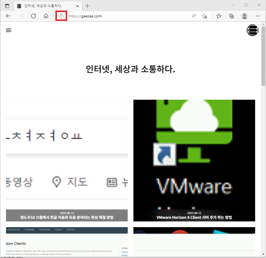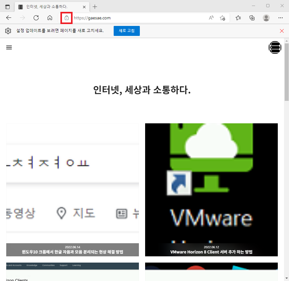 자물쇠 버튼은 https로 구성되어 있는 사이트에서만 표시됩니다.