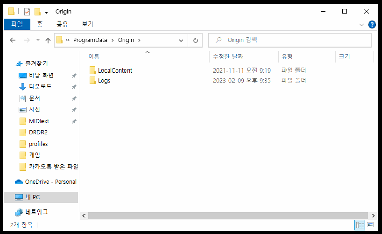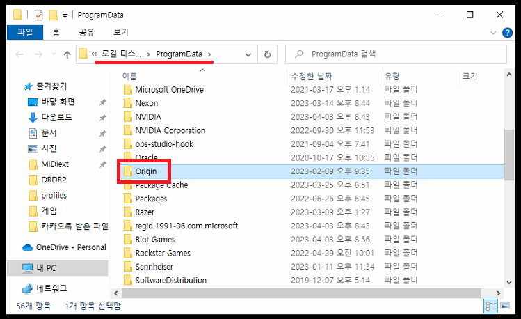 9. 위와 같은 경로로 탐색기 열리셨다면 Origin 폴더를 찾아줍시다.