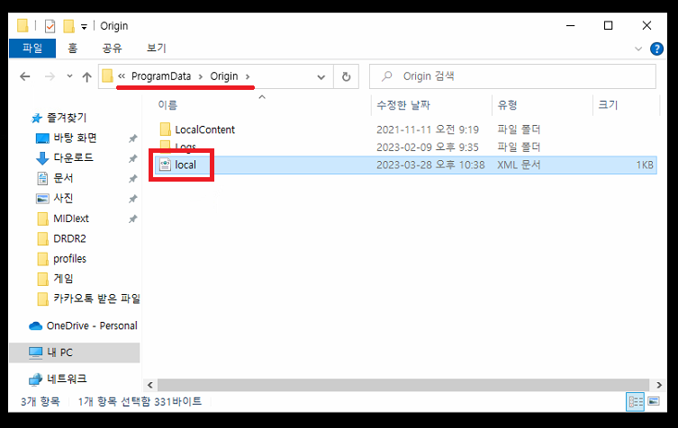 12. 아까 다운로드 받았던 local.xml 파일을 Origin 폴더에 넣어줍시다.